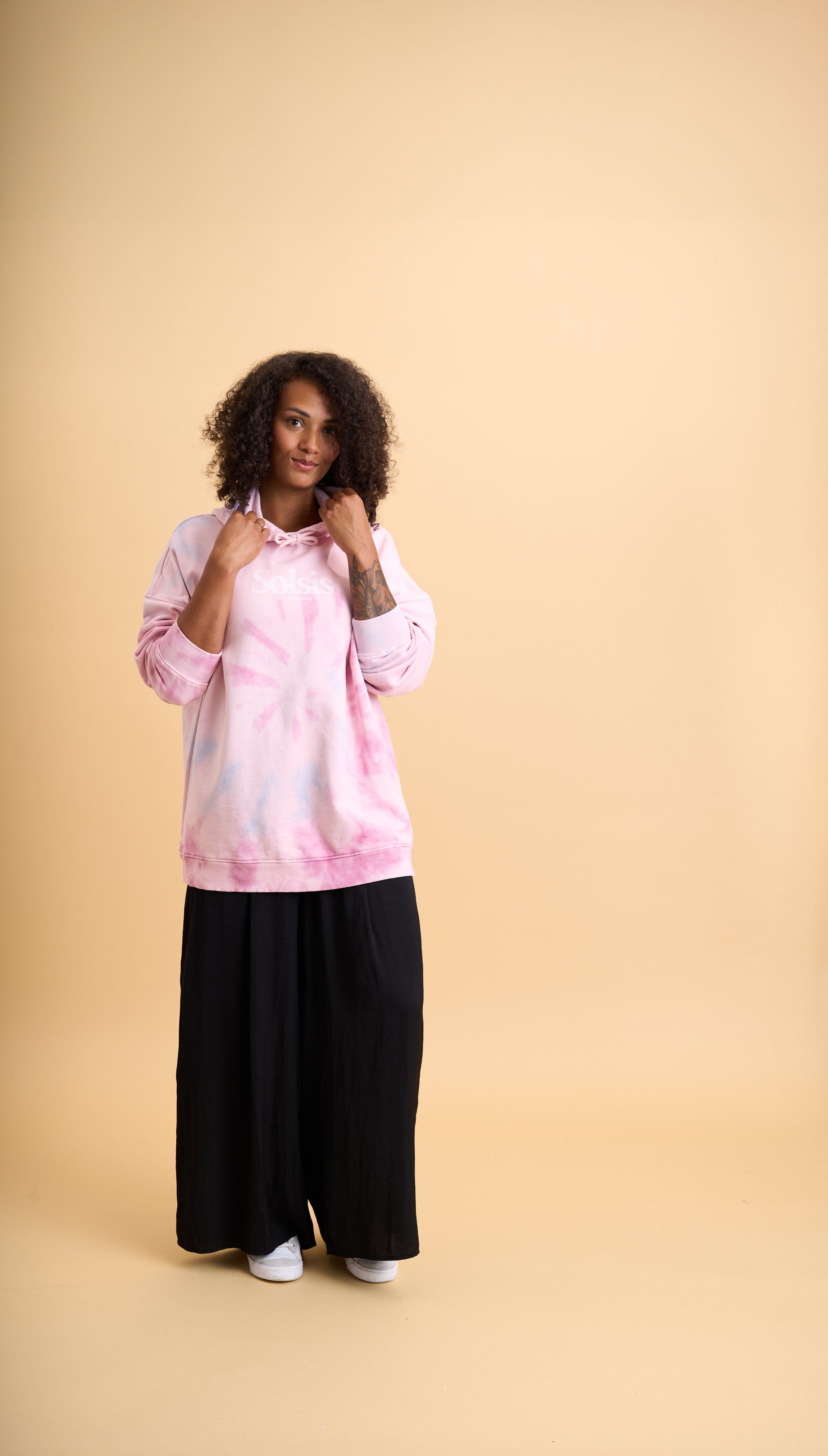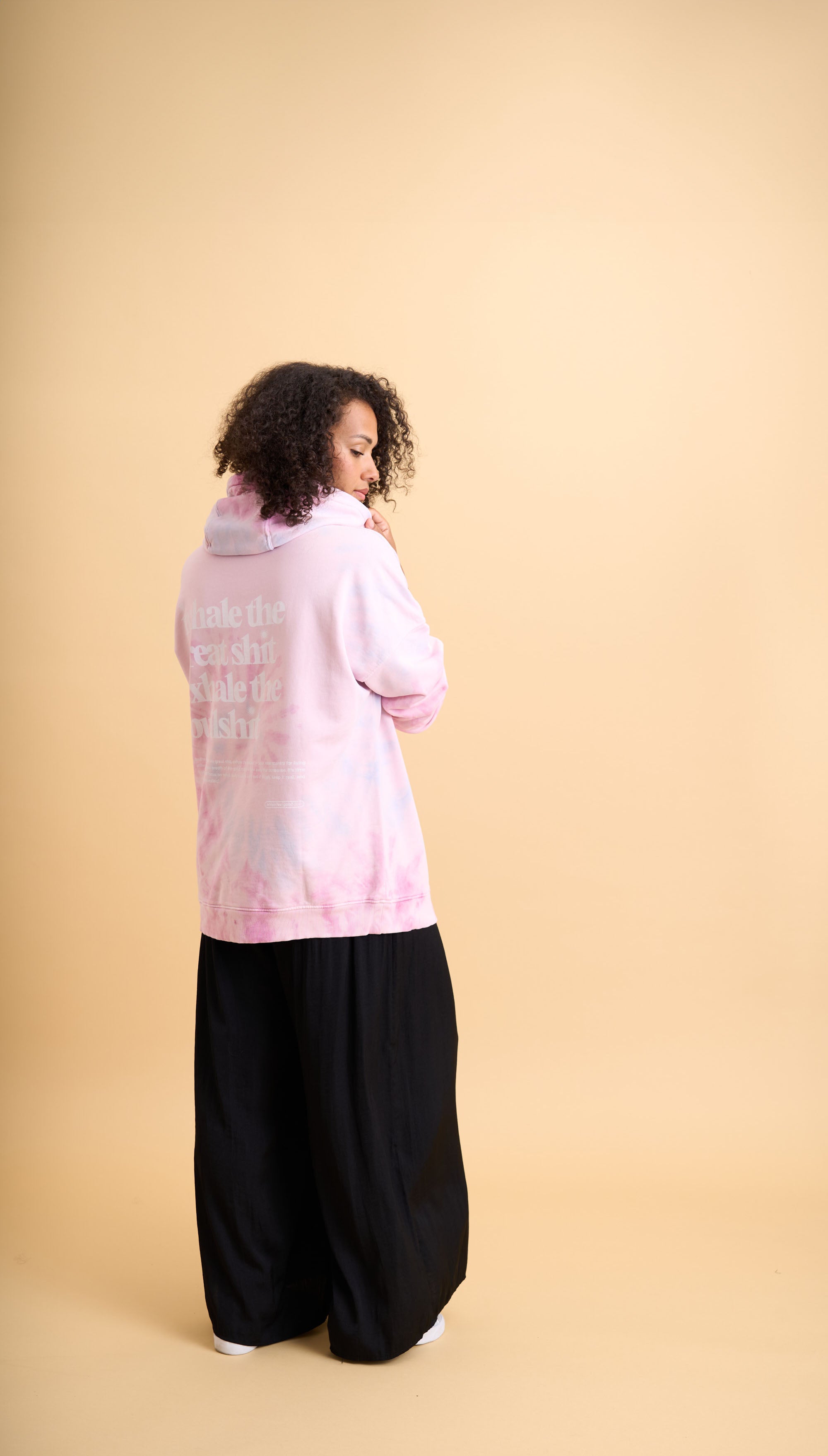 Das auffällige Batikmuster in Rosa und Blau macht diesen Hoodie zu einem echten Hingucker. Jeder Hoodie ist ein Unikat, was dir einen einzigartigen und unverwechselbaren Stil verleiht. Der freche weiße Aufdruck „Inhale the great shit, exhale the bullshit“ erinnert dich daran, das Positive einzuatmen und den ganzen Mist einfach auszuatmen – perfekt für jeden Tag.