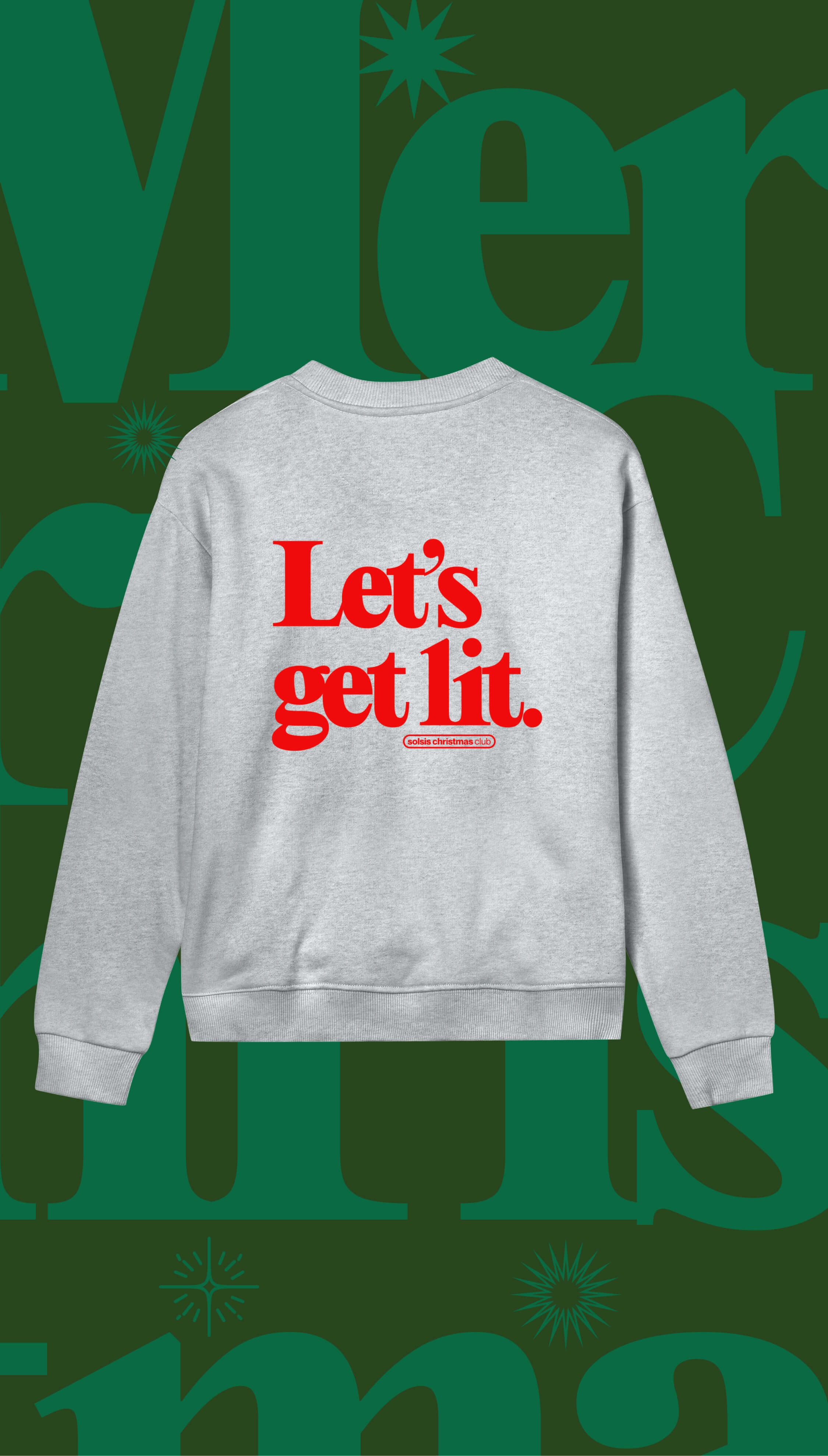 Der Let’s Get Lit Sweater bringt den perfekten Mix aus Cozy Comfort und Christmas Confidence. Vorn zeigt sich nur das edle Solsis Christmas Club-Logo – clean, cool, classy. Doch dreh dich einmal um, und zack: „Let’s get lit.“ – ein Aufruf an alle, die die Feiertage lieber angezündet feiern als nur still und heilig.
